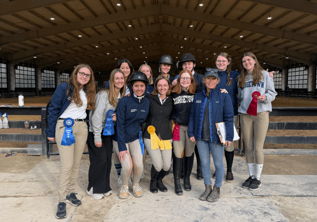 Georgetown University Club Equestrian is a 15-member club team that practices weekly at Sunset Hill Farm in Maryland under the guidance of coach Corie Bacher. The club competes on the flat and over fences in the Intercollegiate Horse Show Association (IHSA) Zone 4 Region 1, attending at least six horse shows each year against George Washington University, American University, University of Maryland, and other schools in the D.C. area. The team includes riders of varying experience levels, from walk-trot through open jumpers.
